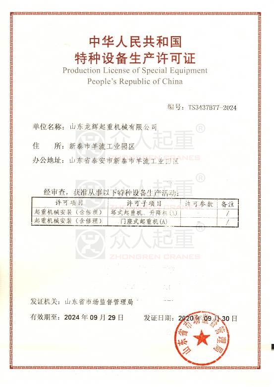 特種設備,安全第一,珍愛生命,請選正品眾人起重機。
